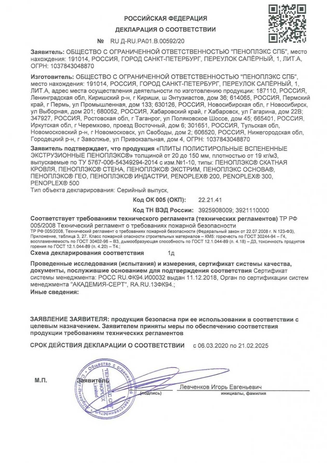Сертификаты продукции Пеноплэкс